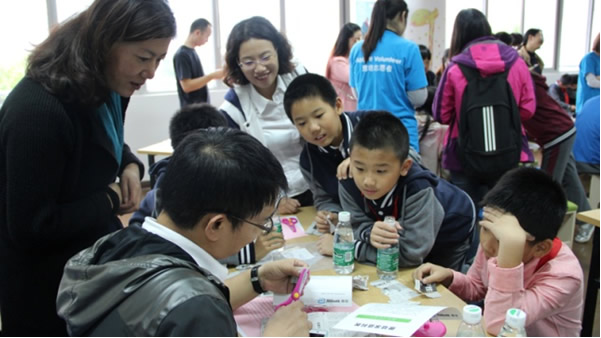 “如何找出证据?”“怎样实现摩擦起电?”“完美容器该如何设计?”……,近2个小时的时间里,家长与孩子们在雅培志愿者和科学老师深入浅出的引导下,一起寻找“给出证据”、制作“完美容器”,通过积极思考和动手实践进行科学探索与学习,发现身边的科学。期间,团队合的磨合,面对不足问题的改进,以及最终成果的分享不时将活动推向高潮。